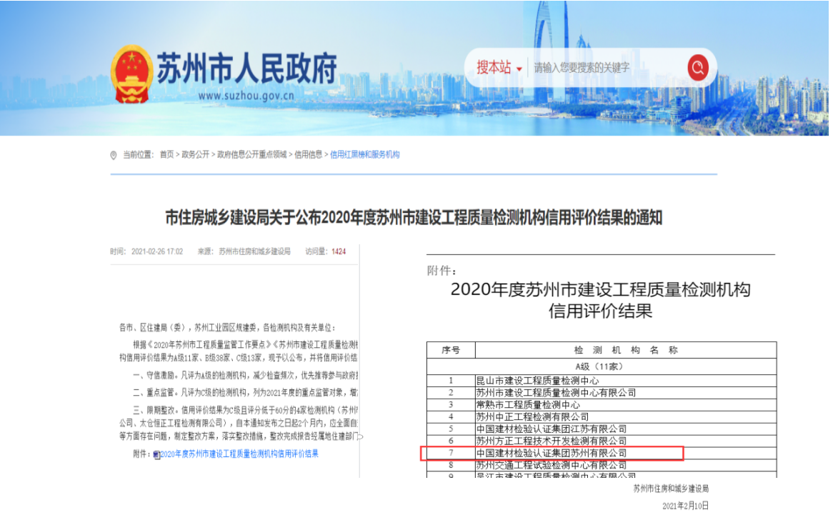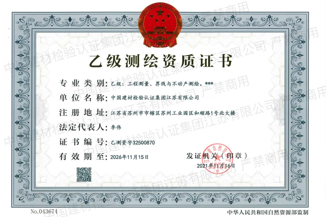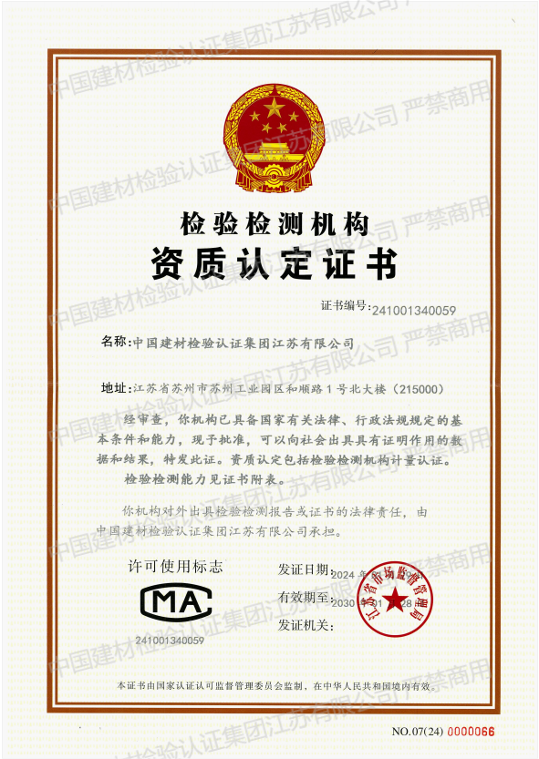 中國(guó)建材檢驗(yàn)認(rèn)證集團(tuán)江蘇有限公司,隸屬于國(guó)檢集團(tuán),總部位于蘇州工業(yè)園區(qū)和順路1號(hào),于2005年11月16日成立,試驗(yàn)室面積約11000平方。